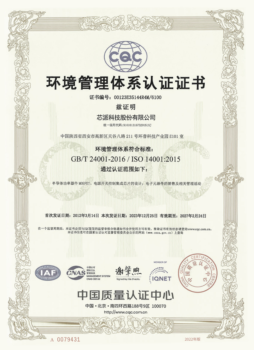 芯派科技通過(guò)中國(guó)質(zhì)量認(rèn)證中心環(huán)境管理體系認(rèn)證
