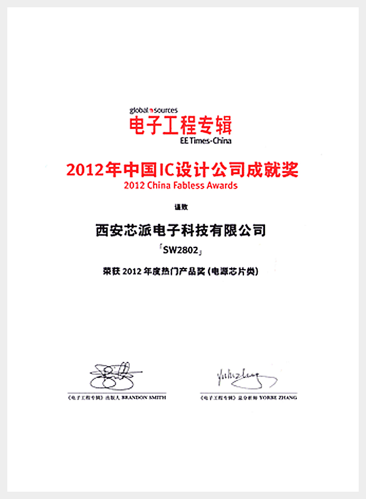 西安芯派科技榮獲2012年度最佳中國(guó)IC電子成就獎(jiǎng)