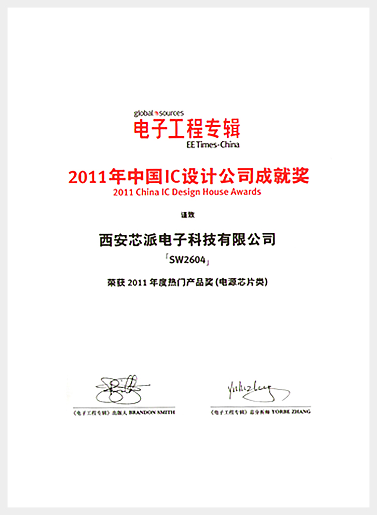 芯派科技榮獲2011年度最佳中國(guó)IC電子成就獎(jiǎng)