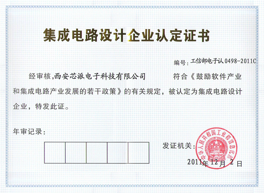 西安芯派電子科技有限公司通過(guò)集成電路設(shè)計(jì)企業(yè)認(rèn)定