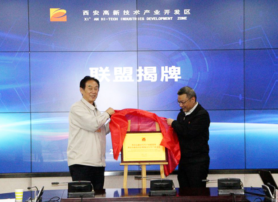 西安高新區(qū)綜合保稅區(qū)專職副主任、高新區(qū)汽車產(chǎn)業(yè)發(fā)展領(lǐng)導(dǎo)小組副組長史康度與聯(lián)盟理事長單位比亞迪汽車有限公司地區(qū)總經(jīng)理劉振宇共同為聯(lián)盟揭牌,在高新區(qū)相關(guān)部門和聯(lián)盟近30家發(fā)起單位的共同見證下,聯(lián)盟正式成立。