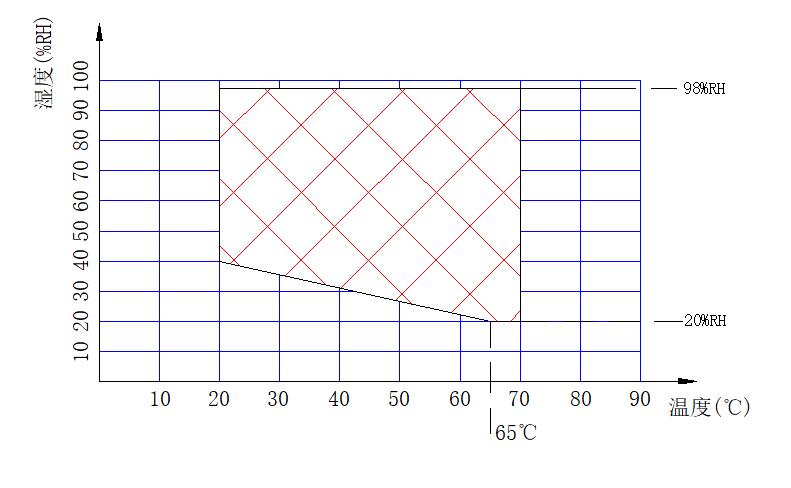 20%RH~98%RH(參照下圖所示溫濕度可控制范圍,無有源 濕、熱負載)