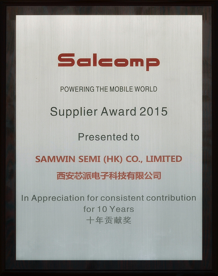 2015年10月,西安芯派電子科技有限公司獲得了賽爾康技術(shù)有限公司頒發(fā)的“十年貢獻(xiàn)獎(jiǎng)”,本年度僅有兩家企業(yè)獲此殊榮。