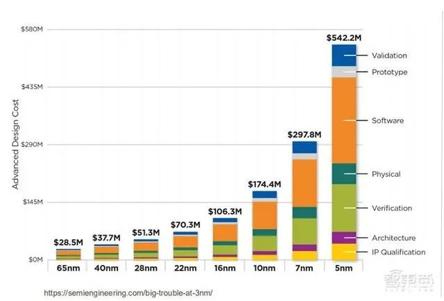 使用先進節(jié)點的好處很多,晶體管密度更大、占用空間更少、性能更高、功率更低,但挑戰(zhàn)也越來越難以克服。極小尺寸下,芯片物理瓶頸越來越難以克服。尤其在近幾年,先進節(jié)點走向10nm、7nm、5nm,問題就不再只是物理障礙了,節(jié)點越進化,微縮成本越高,能擔(dān)負巨額研發(fā)費用并實現(xiàn)盈利的設(shè)計公司越來越少。