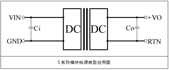 S系列產品應用極為簡單,在實際應用中,僅需在輸入和輸出端口分別加一顆電容即可使用,其典型應用如下圖所示。該款產品為非穩(wěn)壓系列產品,在實際應用過程中,如果需要滿足穩(wěn)壓功能,可在該款產品,輸入或輸出增加一個線性穩(wěn)壓器,以提高穩(wěn)壓精度。